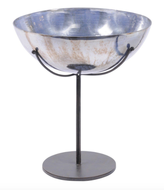 Metallic Platinum Large Round Bowl On Stand
